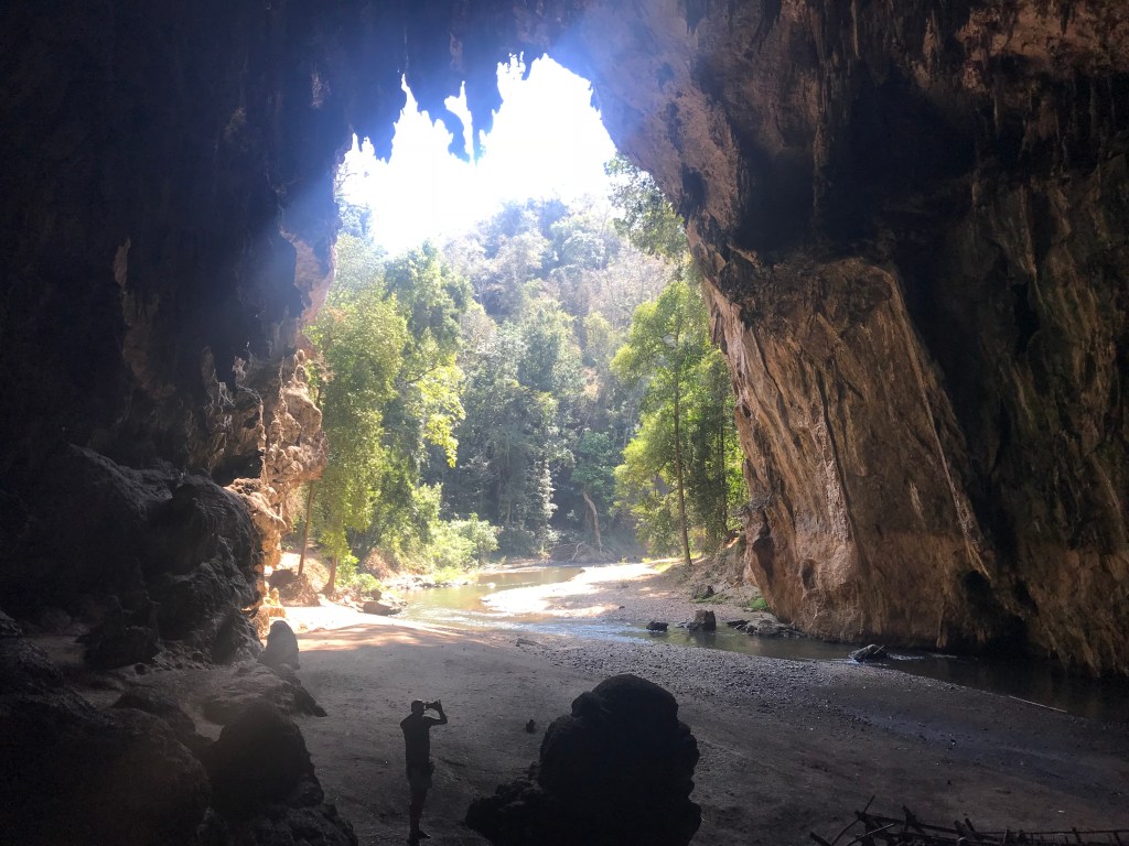 Next up was my first caving experience (of several) on this trip: Tham Lod Cave. Tham Lod is actually a cave system about a mile long; it’s home to a large number of bats and even has a river flowing through it!