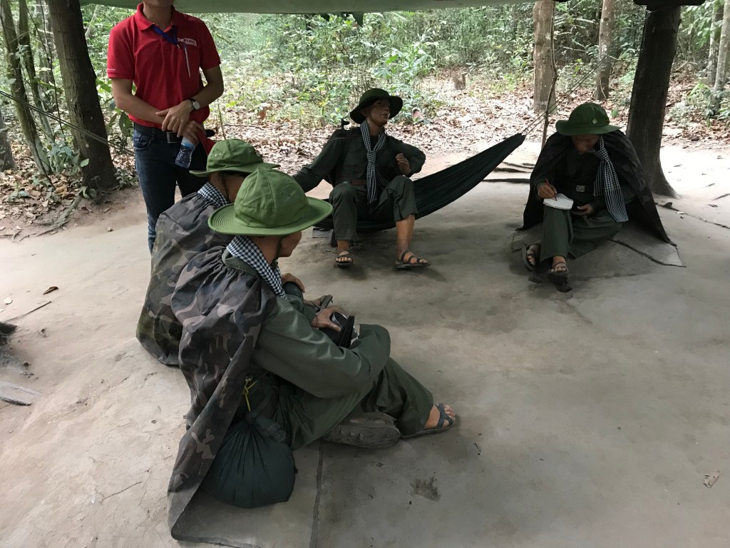 To keep things discreet the Viet Cong made sandals out of discarded tires, called Ho Chi Minh sandals. This created “footsteps” that made it look like their owner had walked in the opposite direction. Our guide joked that in the past you could wear Ho Chi Minh sandals to confuse your girlfriend when you went out with another girl, but “nowadays, ladies have GPS.”